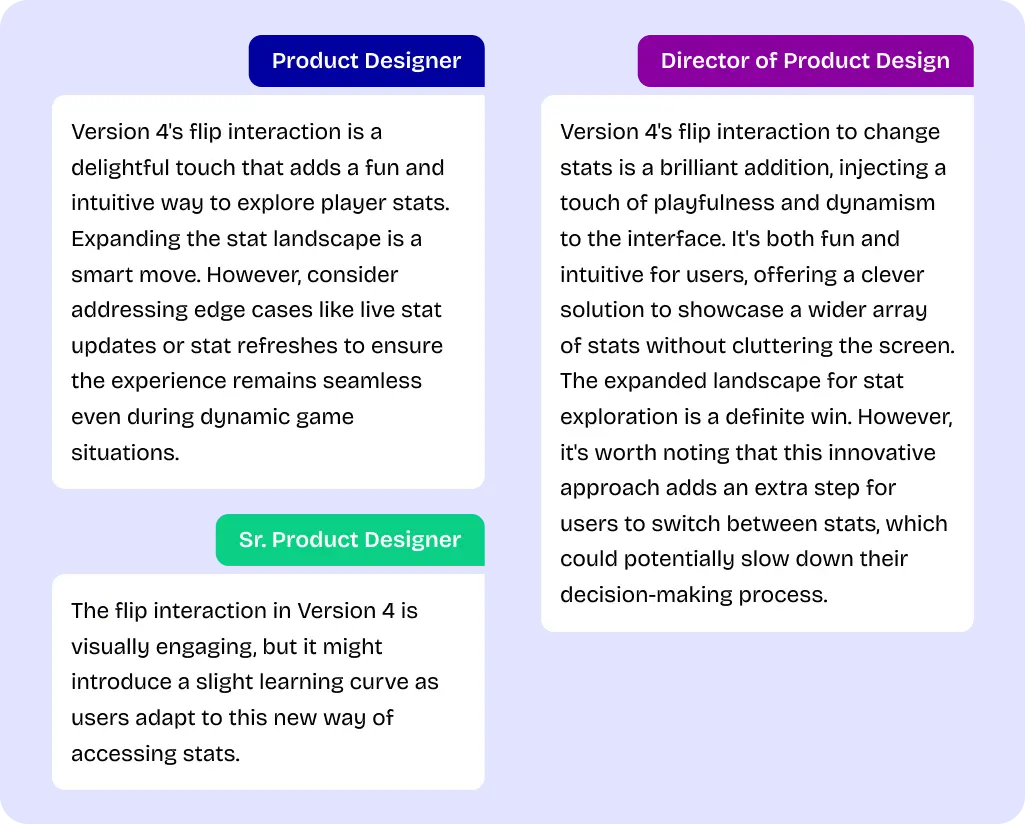 If I had more time, one of my priorities would have been to conduct more in-depth usability testing. While we were able to iterate based on preliminary feedback and data analytics, further usability tests would have provided richer insights into how users interact with the redesigned player cards in real-world scenarios. This would have allowed us to identify any subtle usability issues that might not be immediately apparent and refine the design for even greater clarity and efficiency.
