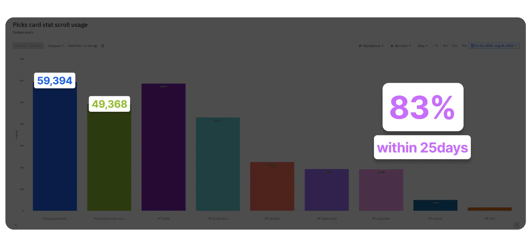 This data-driven insight shifted the focus from eliminating the scroll to optimizing the information presentation within the player cards.