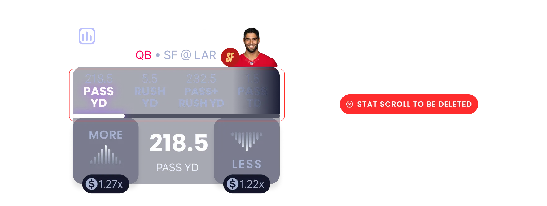 By decluttering the UI, I enabled users to maintain key functionalities while offering them the ability to choose multiple stats directly on the same screen. This streamlined experience, combined with an engaging and intuitive interaction, contributed to a 32% increase in user conversion rates for Sleeper Picks.